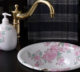 | ■染錦桜絵 有田焼染錦の華麗で格調高い伝統美香る洗面ボウル・手洗器 | ■色彩コスモス絵 彩り豊かな洗面ボウル |